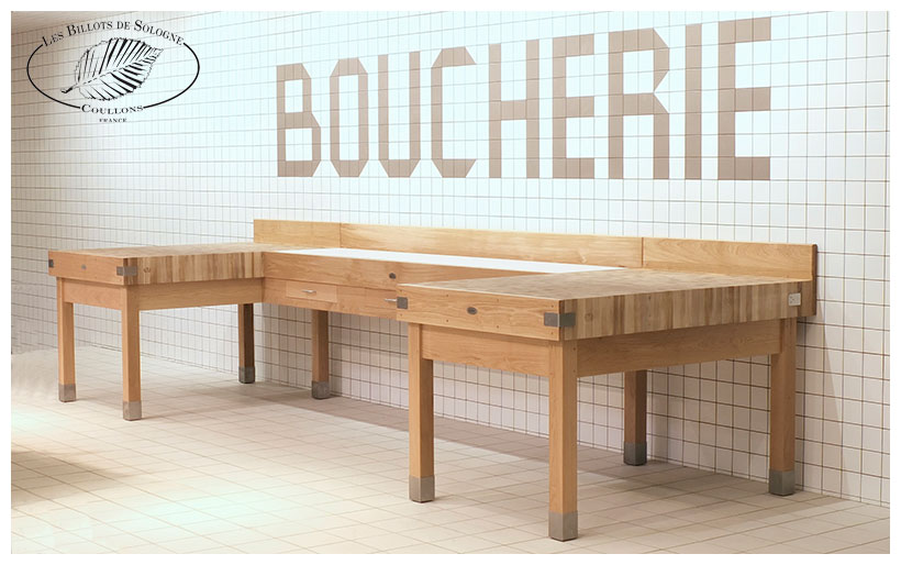 Ébénistes de métier et spécialisés dans la fabrication de billots de boucher et billots de cuisine en bois de bout.